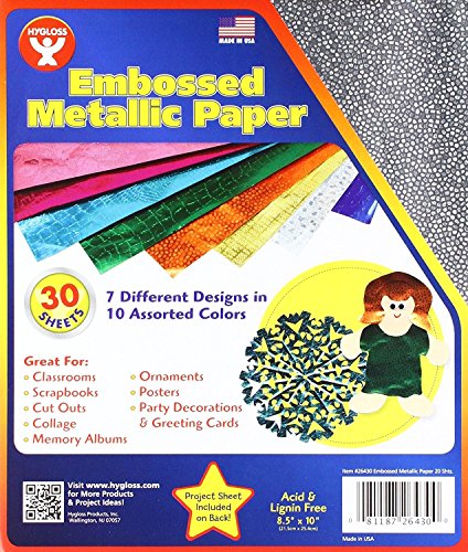 Hygloss 26430 Embossed Metallic Foil Paper, 9 x 10 Size, 30 Sheets, Assorted Color, 0.2 Height, 8.5 Width, 10 Length (Pack of 30)