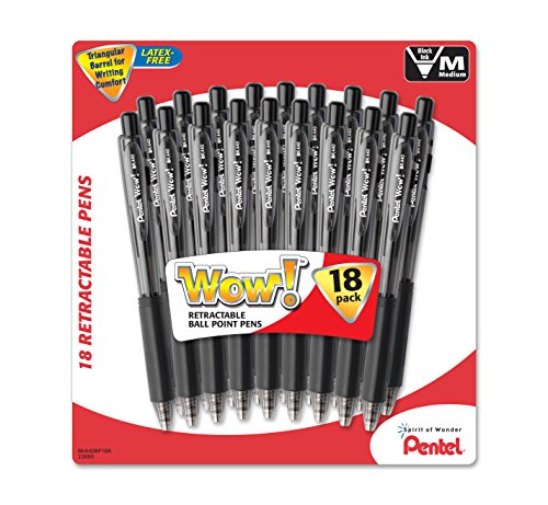 Pentel WOW! Retractable Ballpoint Pens, Medium Line, Black Ink, 18-Pack (BK440BP18A)